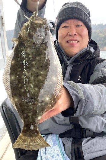 12月21日 ヒラメ出船 初ヒラメ飲ませ釣り、ヒラメゲット♪おめでとうございま~す(*´▽`*)ワーイ♪ ナイスサイズのアコウも(^^♪ かじり逃げが多発・・・(;・∀・) タイは、お土産用にタイラバを少々巻巻き巻きして・・・